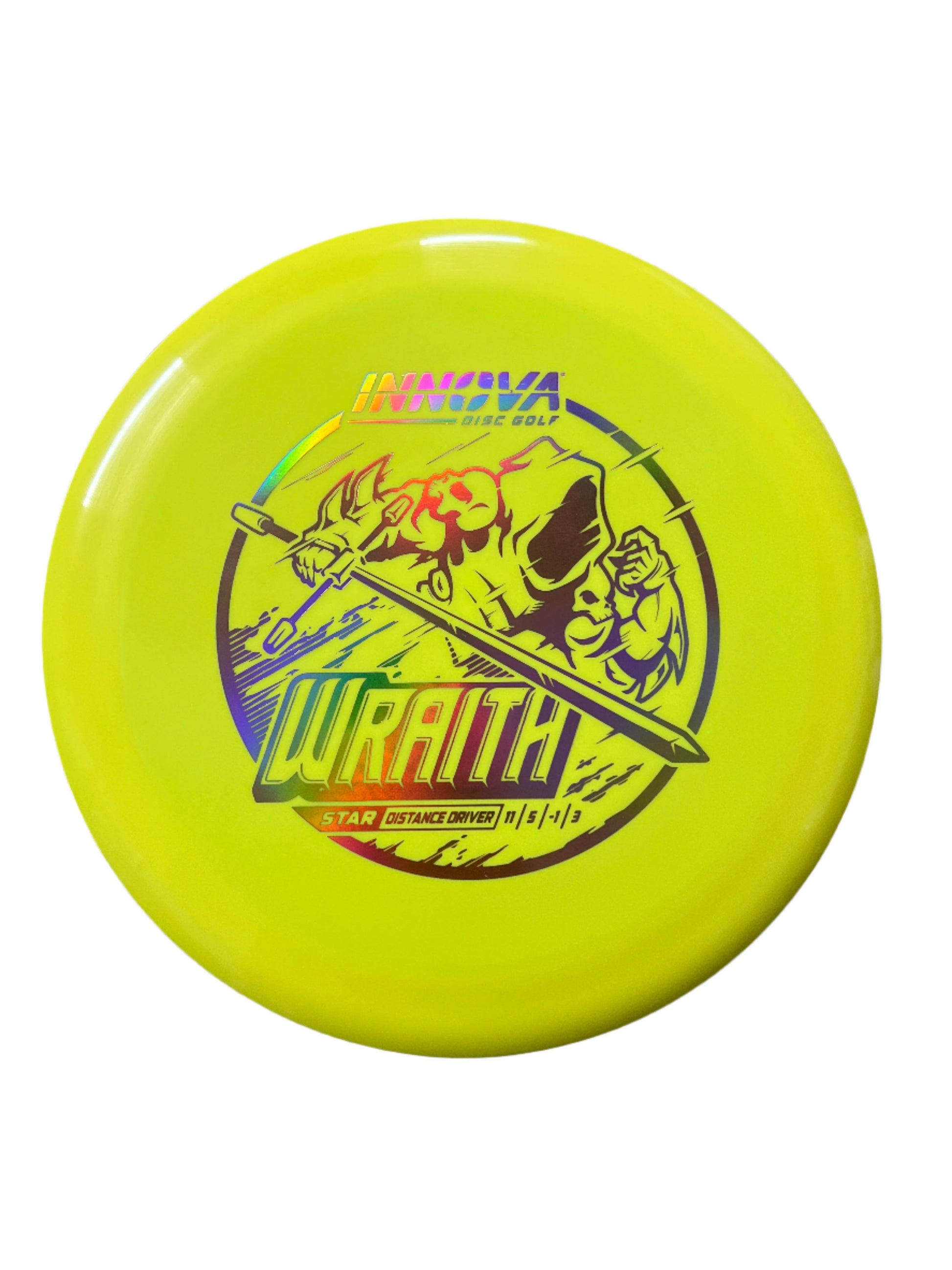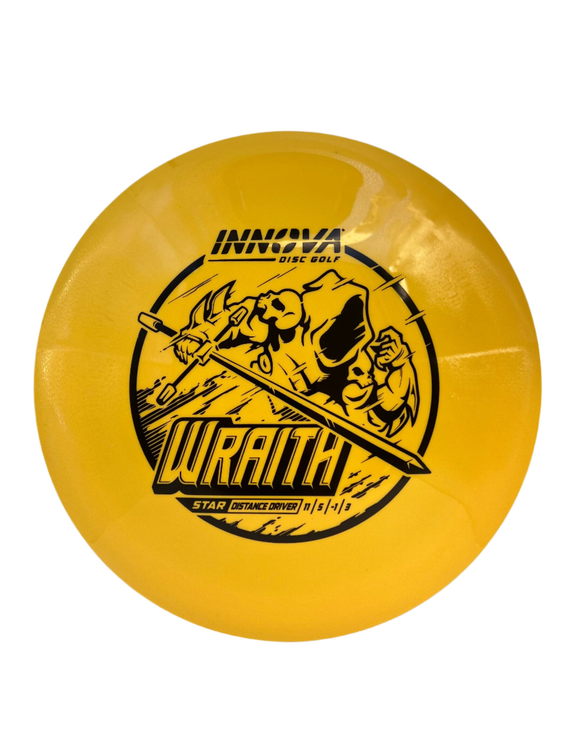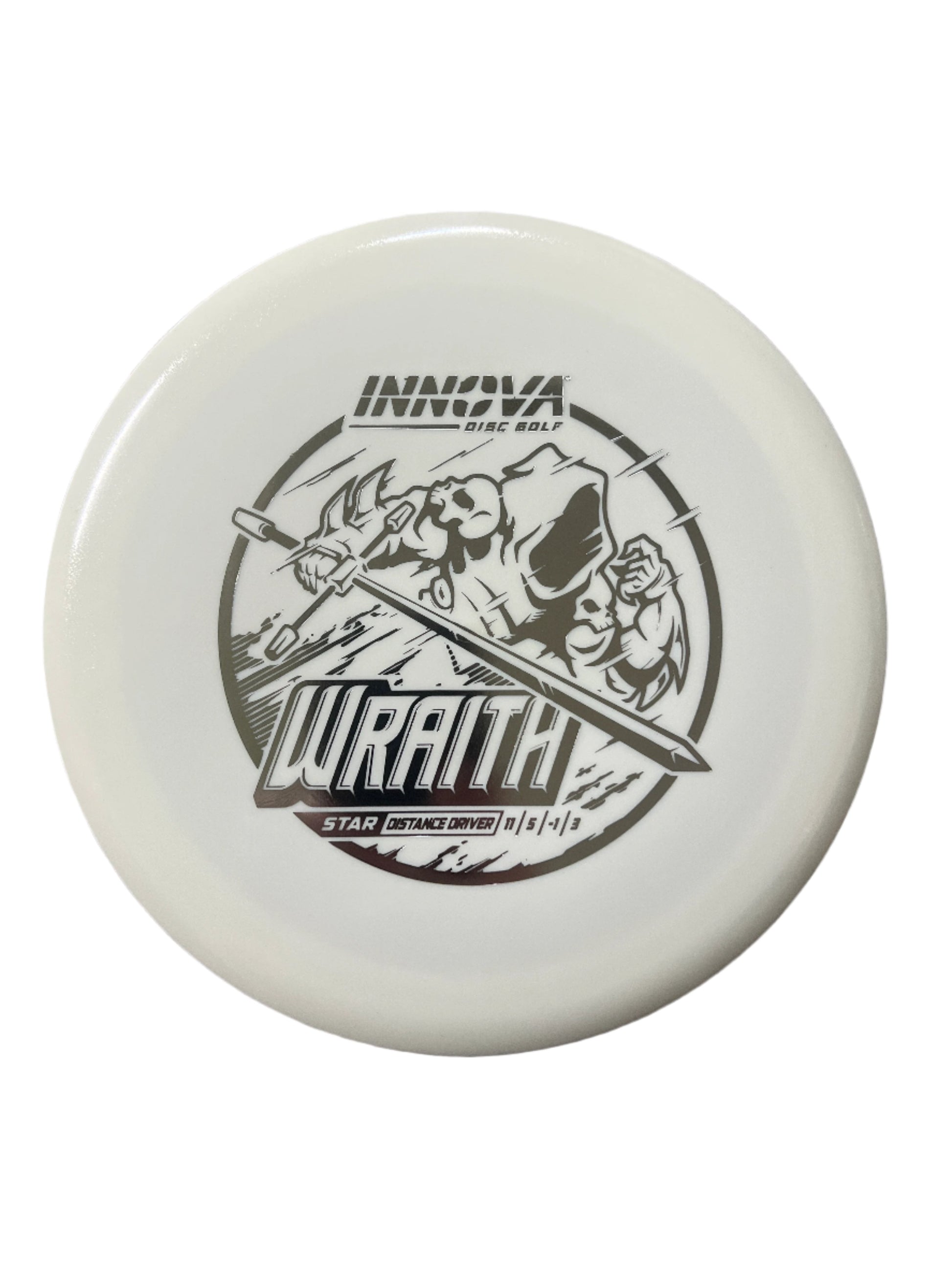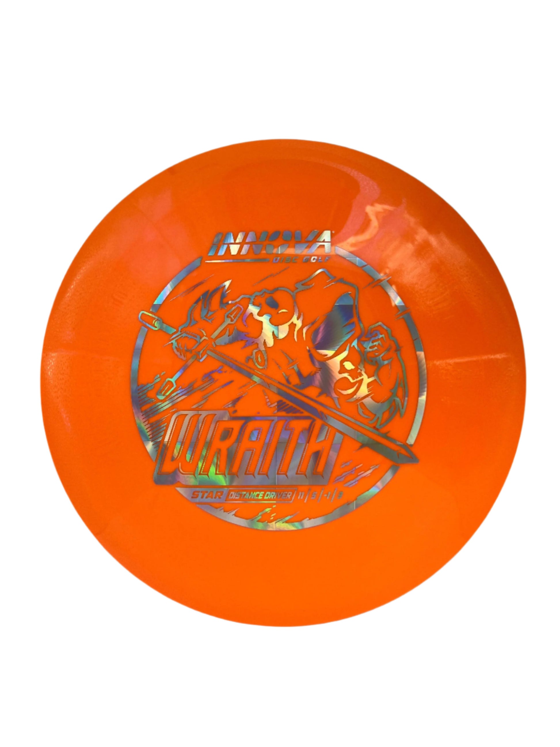 The Innova Wraith is a long, stable, distance driver with decent speed, exceptional glide, and precision accuracy. Players of many different skill levels can get great distance with the Wraith. The neutral stability of the Wraith allows it to be a valuable disc in all wind conditions. This driver works well for both forehand and backhand throws.